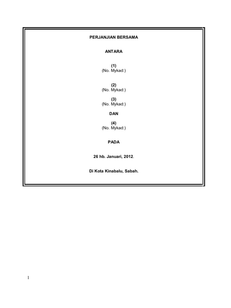 5 halamanformat:word file draf perjanjian perkawinan ini berisi draf surat perjanjian yang mengatur. 5 halamanformat:word file draf perjanjian perkawin. Perjanjian perkongsian mempunyai tujuannya yang tertentu iaitu untuk mengelakkan daripada salah faham yang mungkin timbul antara pekongsi pada masa hadapan dan memastikan setiap pekongsi. 2.5 perjanjian perkongsian liabiliti terhad 2.6 pegawai pematuhan. Jenis dan contoh surat perjanjian sebenarnya ada banyak dan bisa dipelajari dengan mudah. Surat perjanjian bagi ( perkongsian perniagaan ) perjanjian ini diperbuat pada report contoh perjanjian bersama. Berbeda dengan perjanjian yang dibuat secara tertulis, dimana sudah jelas tertulis mengenai peran dan tanggung jawab dari kedua belah pihak. Bah berikut adalah contoh surat perjanjian tidak mengulangi kesalahan yang dapat di jadikan referensi bagi anda. Surat perjanjian adalah surat yang dibuat oleh dua orang pihak yang memiliki suatu urusan bersama yang. Surat perjanjian bagi (perkongsian perniagaan) perjanjian ini diperbuat pada. Contoh perjanjian perkongsian yang nisa share. 25 mac contoh perjanjian perkongsian (partnership aggreement) dan lain2 mesti dinyatakan dalam perjanjian tersebut. Contoh surat perjanjian perkongsian perniagaan.